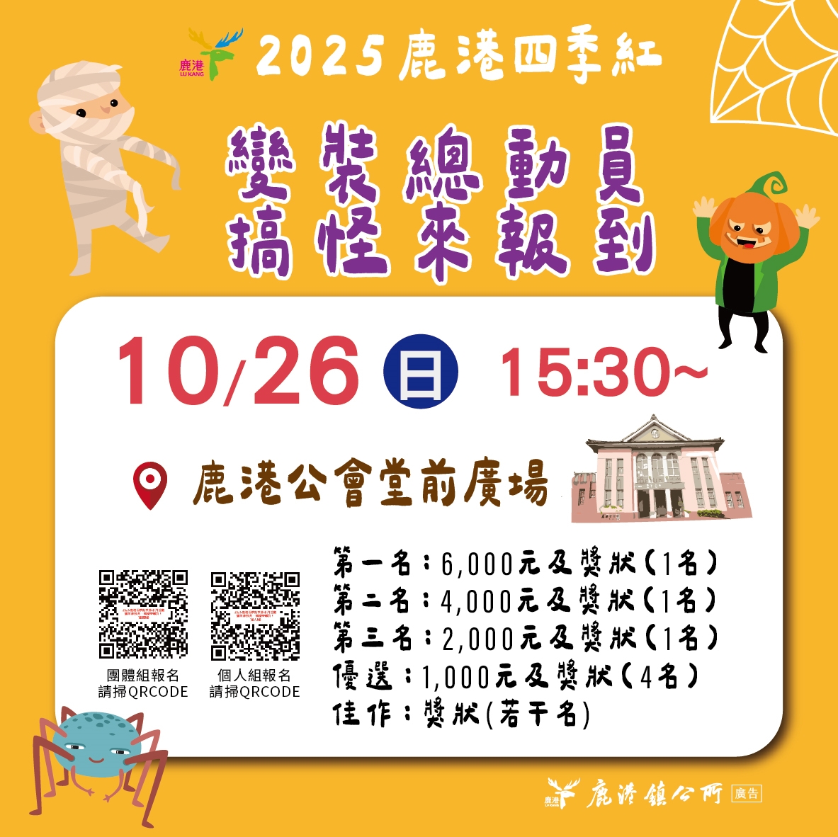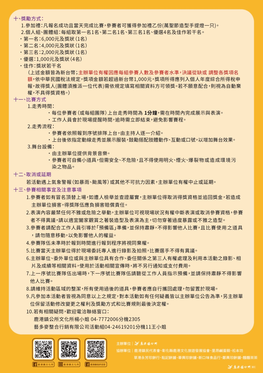 📍比賽地點:鹿港公會堂前廣場舞台(鹿港鎮埔頭街72號)