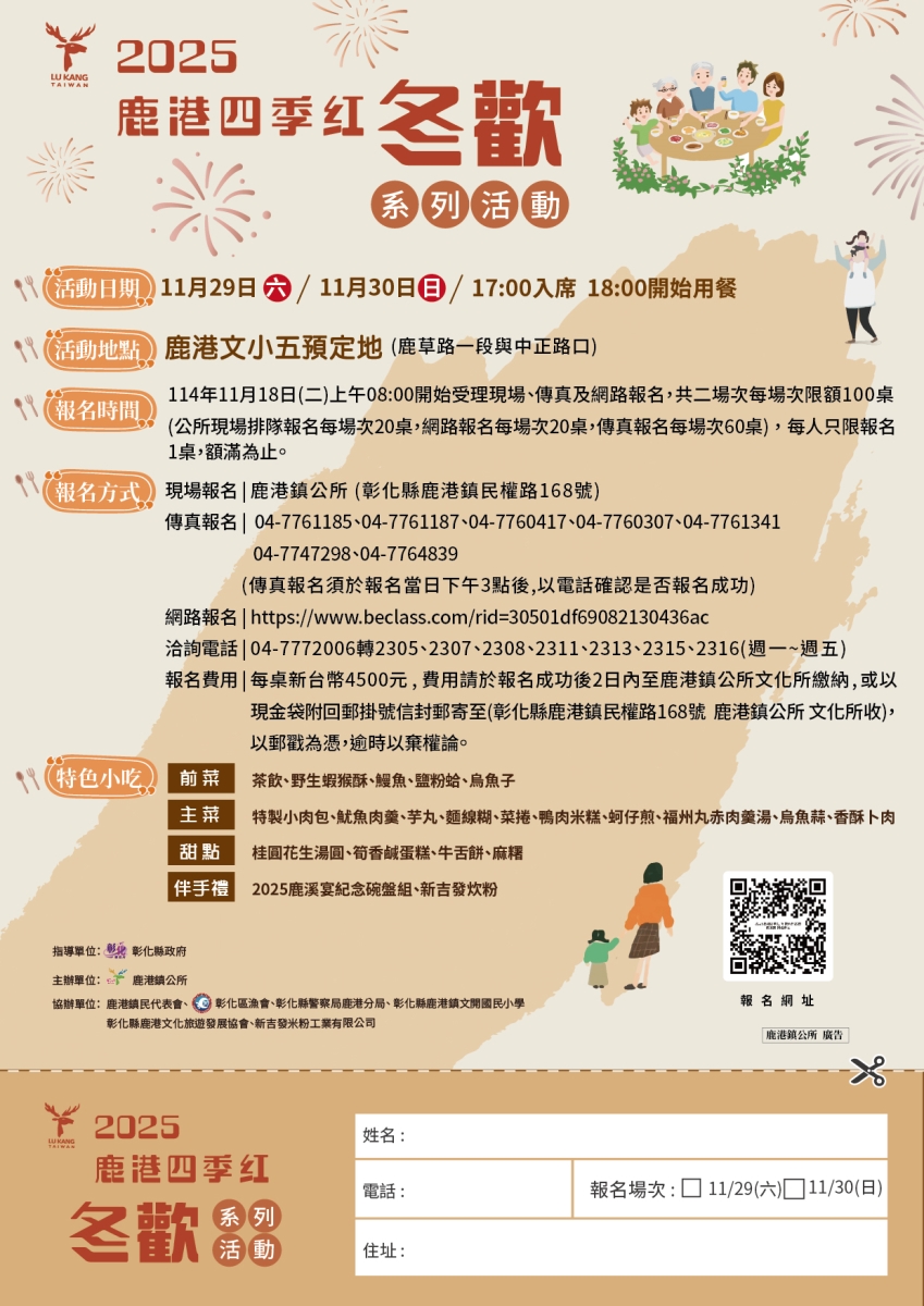 #鹿溪宴👉開始受理報名於 114年11月18日 上午8點準時開放