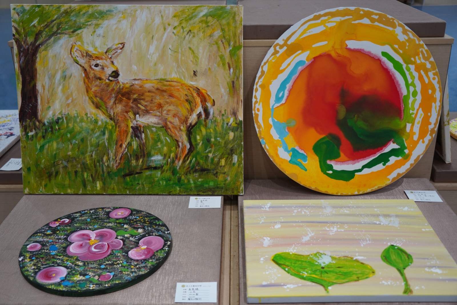 展出者張碧霞為退休教師,自112年起接觸藝術療癒創作,首次以手指點畫方式完成作品,突破過往對「畫不像」的心理限制,開啟自由創作之門。其創作歷程結合內在覺察與情感釋放,在作畫過程中體驗到自在、流動與喜悅,並將創作視為一段與內在神聖意識相遇的旅程。短短三年間,已陸續參與多場個展與聯展,累積豐富展覽能量,本次於鹿港藝文中心的展出,為張碧霞藝術創作之整體呈現。