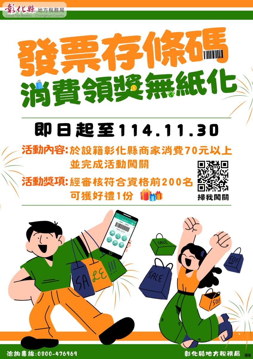 轉知彰化縣地方稅務局舉辦「發票存條碼 消費領獎無紙化」活動